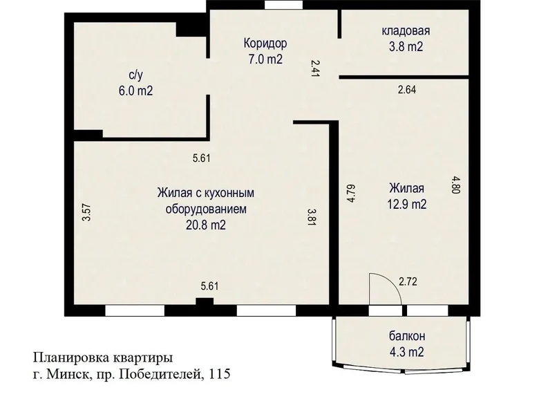1. Excellent layout: the total area of the National Security Council - 53.5 m2, living area - 33.7 m2, kitchen - 10 m2, glazed loggia - 4.3 m2.